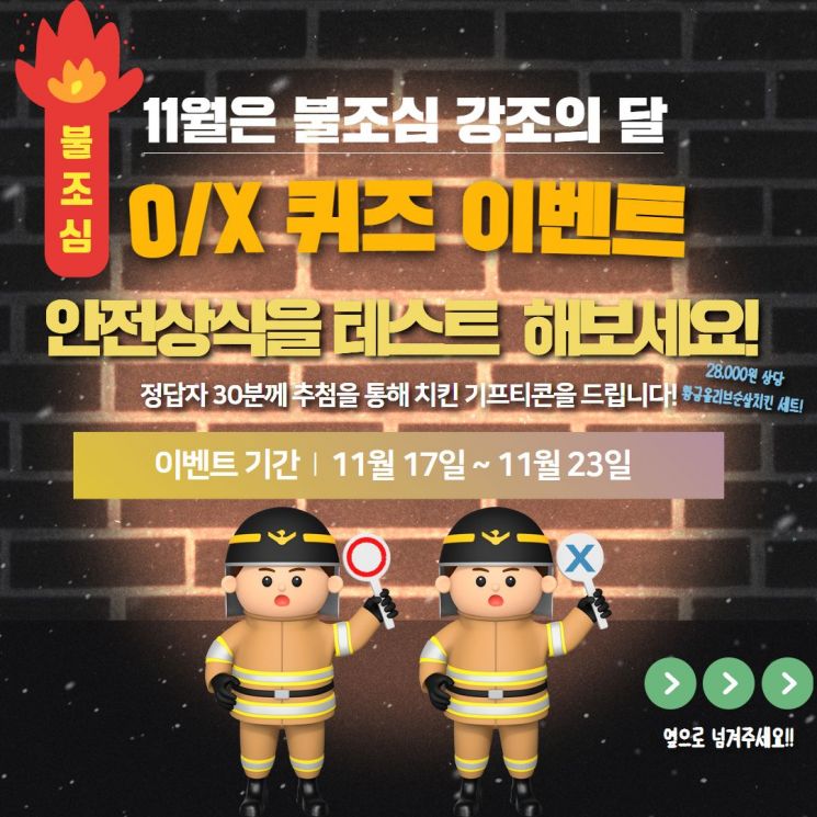 전북소방본부가 11월 '불조심 강조의 달'을 맞아 도민의 생활 속 화재예방 인식을 높이기 위한 SNS OX 퀴즈 이벤트를 진행한다.