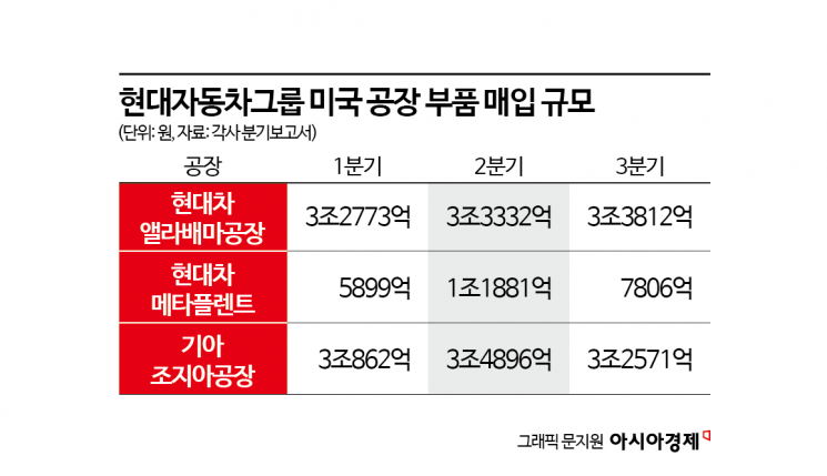 美 공장 3곳, 2~3분기 부품매입 15조