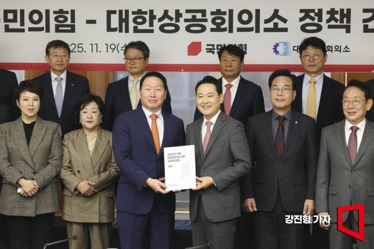 간담회엔 장동혁 대표와 송언석 원내대표, 김도읍 정책위의장 등이 참석했다. 경제계에선 이형희 SK 부회장과 하범종 LG 사장, 이태길 한화 사장, 최승훈 삼성전자 부사장 등이 나왔다.