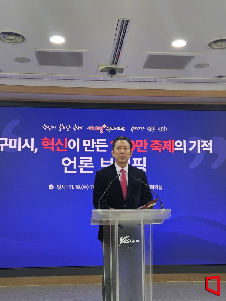 김장호 구미시장은 19일 오전 11시 시청 3층 대회의실에서 언론 브리핑을 열고, '구미 100만 축제시대'의 주요 성과와 미래 과제를 제시했다.