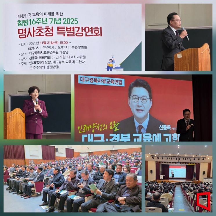 이날 강연자로 나선 신동욱 국회의원(국민의힘·대표최고위원)은 '인재 양성의 요람 대구·경북 교육에 고한다-민주주의와 삼권분립'을 주제로, 국가 운영의 근간이 되는 자유민주주의 가치와 교육의 책무성을 강조했다.