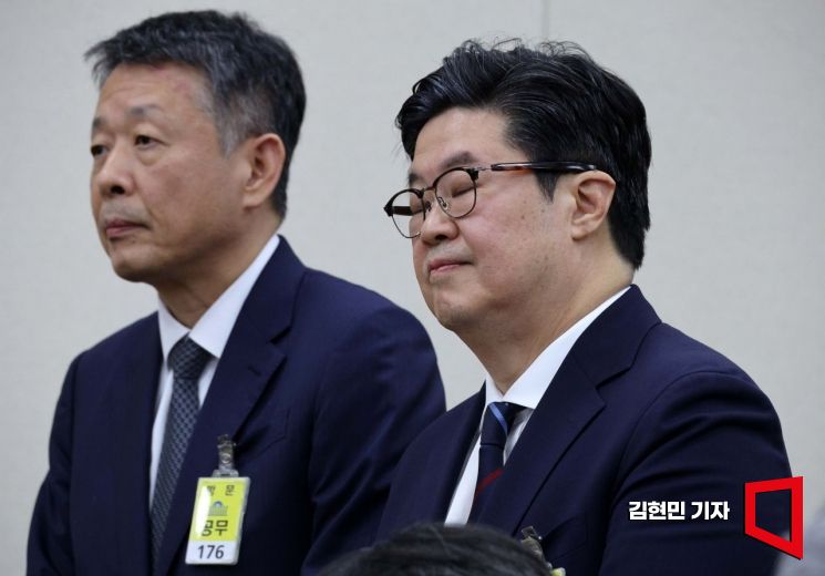 김병주 MBK파트너스 회장이 14일 국회에서 열린 공정거래위원회, 개인정보보호위원회 등에 대한 정무위원회 국정감사에서 의원 질의에 답변하고 있다. 왼쪽은 김광일 홈플러스 대표이사. 2025.10.14 김현민 기자