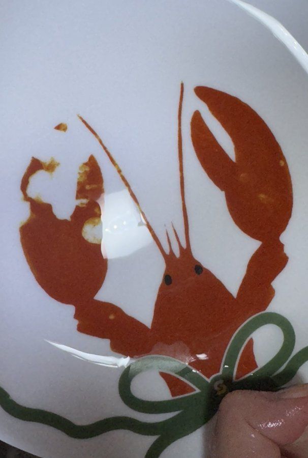 공유한 사진들은 접시 하단에 그려져 있는 랍스터의 왼쪽 집게발 그림이 지워져 있는가 하면, 랍스터 그림의 대부분이 지워지기도 했다. 접시 세척 과정에서 쉽게 지워지는 점도 문제지만 핫소스와 같이 산성 식품이 닿으면 순식간에 지워졌다는 증언도 여럿 확인됐다.