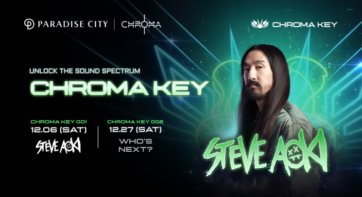 스티브 아오키가 참가하는 크로마 키는 다음 달 6일 오후 9시부터 익일 오전 6시까지 진행된다. 세계적인 DJ와 음악 팬들이 한자리에 모여 아시아 클럽 컬처의 새로운 장을 여는 페스티벌로 기획됐다. 다음 달 27일에도 새로운 헤드라이너와 함께 공연이 이어질 예정이다. 입장 티켓은 크림(KREAM)을 통해 판매한다.