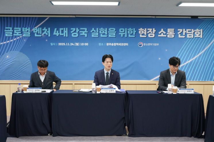 중소벤처기업부는 노용석 제1차관이 '글로벌 벤처 4대 강국 도약 방안' 수립을 위한 호남권 벤처·스타트업 간담회를 개최했다고 24일 밝혔다.
