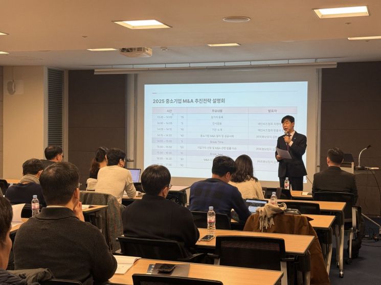 이번 설명회는 M&A에 관심이 있는 매도·매수 희망 중소기업 45개사가 참가했다. 실무에서 필요한 ▲M&A 추진절차 ▲M&A 기업가치 평가 ▲M&A 관련 법률·세무 이슈 ▲M&A 디지털플랫폼 등 핵심 내용을 중심으로 진행했다.
