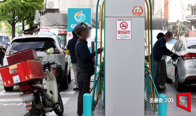 정부가 유류세 인하폭을 축소하기로 한 1일 서울 서초구 만남의 광장 알뜰주유소를 찾은 시민이 차량에 주유를 하고 있다. 이날부터 8월 31일까지 휘발유에 대한 유류세 인하율을 기존 25%에서 20%로, 경유에 대한 인하율은 37%에서 30%로 축소 적용한다. 이에 따라 휘발유의 유류세는 리터당 615원에서 656원으로 41원 오르고, 경유의 유류세도 369원에서 407원으로 38원 오르게 된다.사진=조용준 기자 jun21@