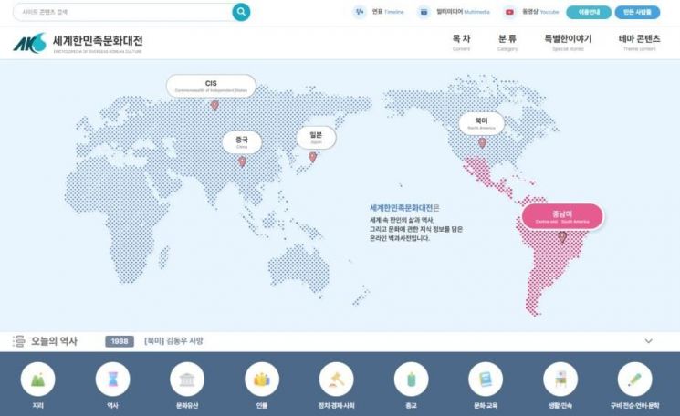 한국학중앙연구원은 '세계한민족문화대전'에 중남미 권역 콘텐츠를 새로 구축했다고 1일 밝혔다.