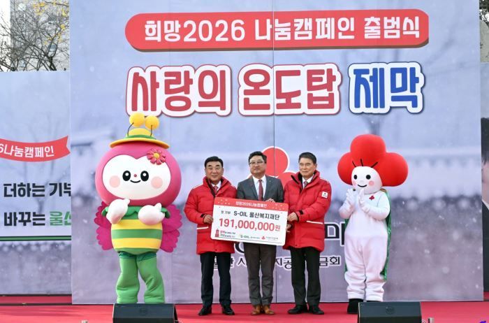 S-OIL 김보찬 울산 Complex Head는 "S-OIL이 '희망 2026 나눔 캠페인'의 첫 기부자로서 마중물 역할을 하게 돼 더욱 뜻깊다"며 "이번 기부가 사랑의 온도탑 목표 달성에 힘을 더하길 바란다"고 말했다. 이어 "S-OIL은 울산과 함께 성장해 온 기업으로서 앞으로도 일자리 창출과 '나눔'이라는 핵심가치를 바탕으로 지역 사회가 필요로 하는 다양한 사회공헌 활동을 지속해 나가겠다"고 강조했다.