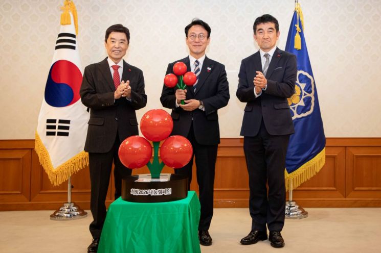 김민석 국무총리가 2일 오전 연말연시를 맞아 사랑의열매 사회복지공동모금회(회장 김병준) 이웃돕기 캠페인 '희망2026나눔캠페인'에 성금을 전달했다.