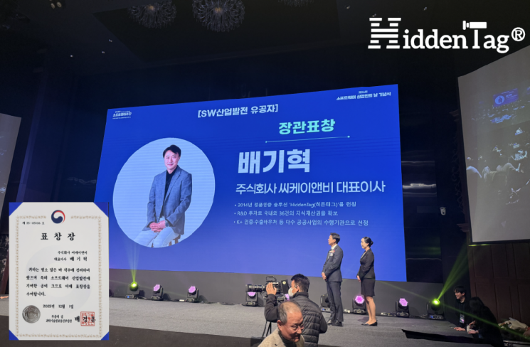 정품인증 솔루션 '히든태그(HiddenTag)'를 운영하는 씨케이앤비(CK&B)의 배기혁 대표가 제26회 소프트웨어(SW) 산업인의 날에서 '2025 소프트웨어 산업발전 유공자'로 선정돼 과학기술정보통신부 장관상을 수상했다. 이번 수상은 정품 인증·가품 방지 분야에서 국산 소프트웨어 기술의 혁신성과 글로벌 산업적 파급력을 인정받은 결과다.