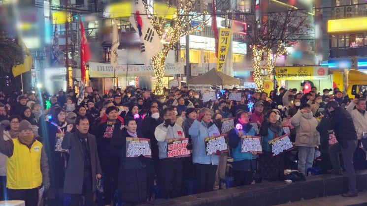 진보성향 시민사회단체 20여곳이 참석한 '내란청산 사회대개혁 경남행동'은 이날 오후 6시 30분께 창원시 성산구 상남분수광장에서 집회를 열었다.