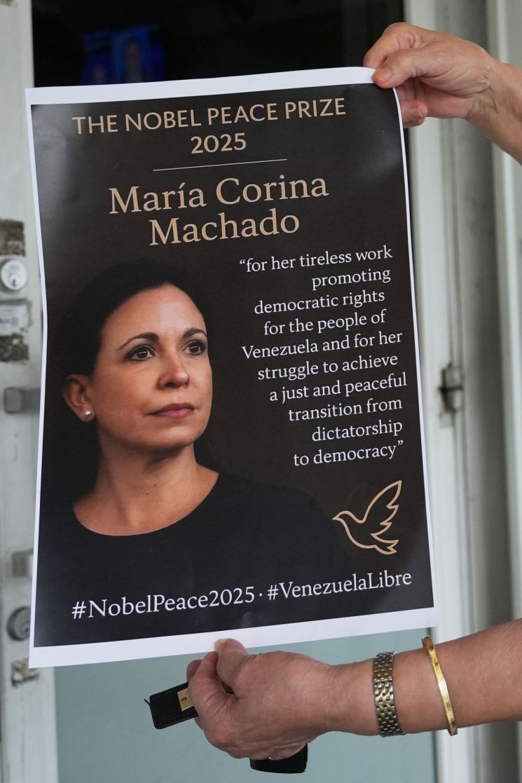 앞서 지난 10월 노르웨이 노벨위원회는 올해 노벨평화상 수상자로 베네수엘라의 야권지도자 마리아 코리나 마차도를 선정한 바 있다. 노벨위원회는 마차도에 대해 "베네수엘라 국민의 민주주의 권리를 촉진하기 위해 지치지 않고 노력했으며, 독재에서 민주주의로 정의롭고 평화로운 전환을 이루기 위해 노력했다"고 밝혔다.