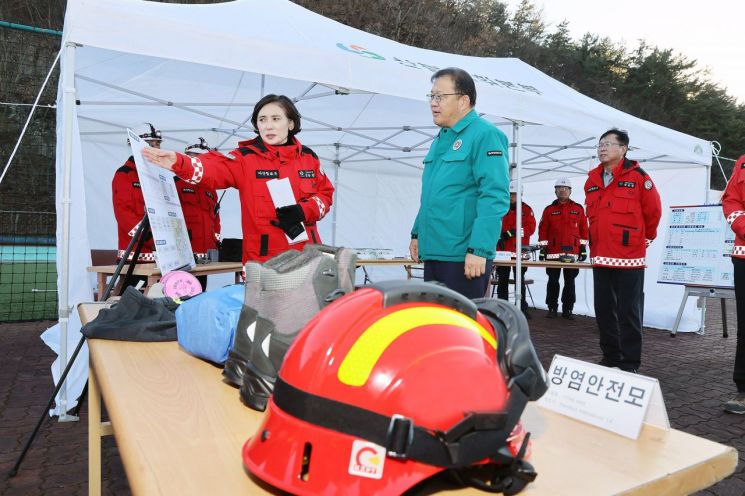 이 자리에서 산불진화대원의 안전장비 및 개인진화장비 배치 상황을 점검하고 현장에서 산불예방 활동을 수행 중인 감시원들과 만나 근무환경 및 개선 필요사항도 청취했다.