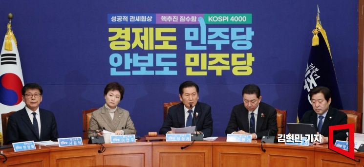 정청래 더불어민주당 대표가 8일 국회에서 열린 최고위원회의에서 발언하고 있다.