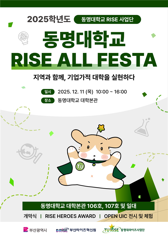 동명대학교가 '지역과 함께, 기업가적 대학을 실현하다'는 슬로건으로 2025 RISE ALL FESTA를 펼친다.