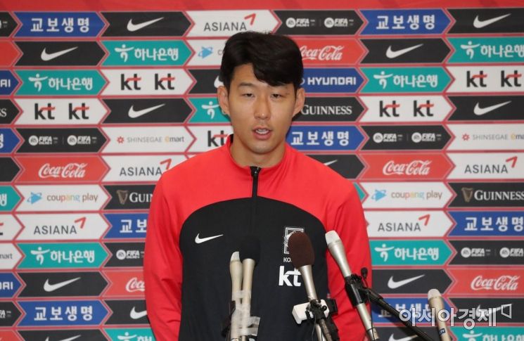 12년 만의 월드컵 16강 진출을 이룬 한국 축구대표팀의 파울루 벤투 감독과 선수들이 7일 오후 인천국제공항을 통해 귀국했다. 손흥민이 귀국 인터뷰를 하며 눈 옆 수술자국을 만지고 있다. /허영한 기자 younghan@