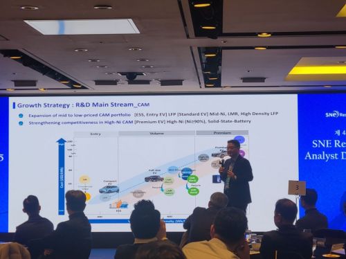 포스코퓨처엠 기술연구소의 남상철 양극재연구센터장이 10일 SNE리서치가 개최한 '제4회 애널리스트데이'에서 포스코퓨처엠의 소재 전략에 대해 설명하고 있다. 2025.12.10 강희종기자