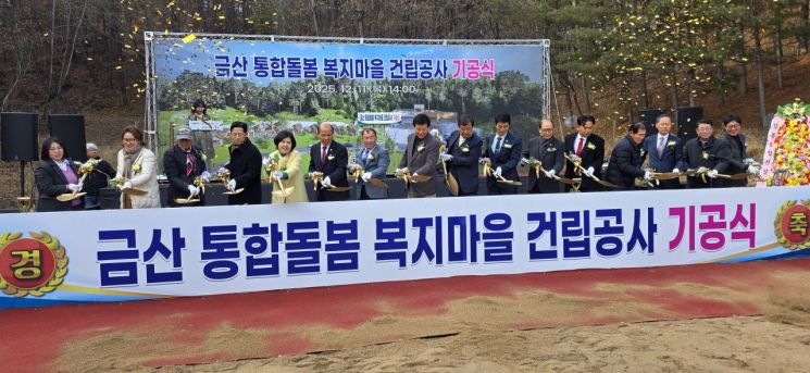 금산군이 11일 오후 금산읍 아인리 438-1번지에서 총 580억 원이 투입되는 '금산 자연치유정원' 중 하나인 '금산 통합돌봄 복지마을' 건립 기공식을 가졌다.