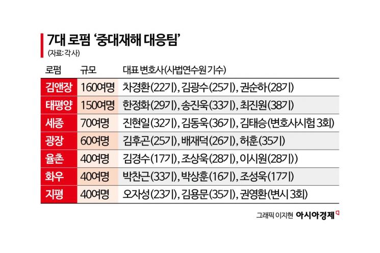 17일 법조계에 따르면 김앤장 법률사무소는 국내 최대 규모의 중대재해 대응 조직을 운영하고 있다. 김앤장은 법 시행 전인 2021년 초 '중대재해 대응그룹'을 꾸렸고, 현재 약 160여 명이 활동하고 있다. 환경·보건·안전팀(EHS팀)을 중심으로 노동형사·건설·인사노무·컴플라이언스가 결합한 형태로, 검사장 출신 차경환 변호사(사법연수원 22기), 김광수·권순하 변호사(25·28기) 등이 주축을 이룬다. CSO가 경영책임자로 인정된 사안에서 '현장 절차 미준수'만으로 경영책임자 의무 위반을 단정할 수 없다는 취지로 불기소 처분을 이끈 사례 등이 주요 업무 성과로 꼽힌다. 250곳 이상 기업을 대상으로 안전보건관리체계 구축 컨설팅을 수행한 점도 강점이다.