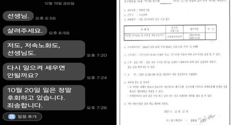 '저속노화' 전문가로 알려진 정희원 박사가 자신을 스토킹했다고 고소했던 전 위촉연구원 A 씨에게 고소를 후회한다는 취지의 문자메시지를 보낸 사실이 드러났다. 26일 A씨를 대리하는 법무법인 혜석은 정 박사가 지난 19일 A 씨에게 보낸 문자메시지 내용을 공개했다. 해석 측이 내놓은 보도자료에는 해당 메시지에는 "살려주세요", "저도, 저속노화도, 선생님도", "다시 일으켜 세우면 안 될까요?", "10월 20일 일은 정말 후회하고 있습니다. 죄송합니다" 등의 표현이 담겼다.