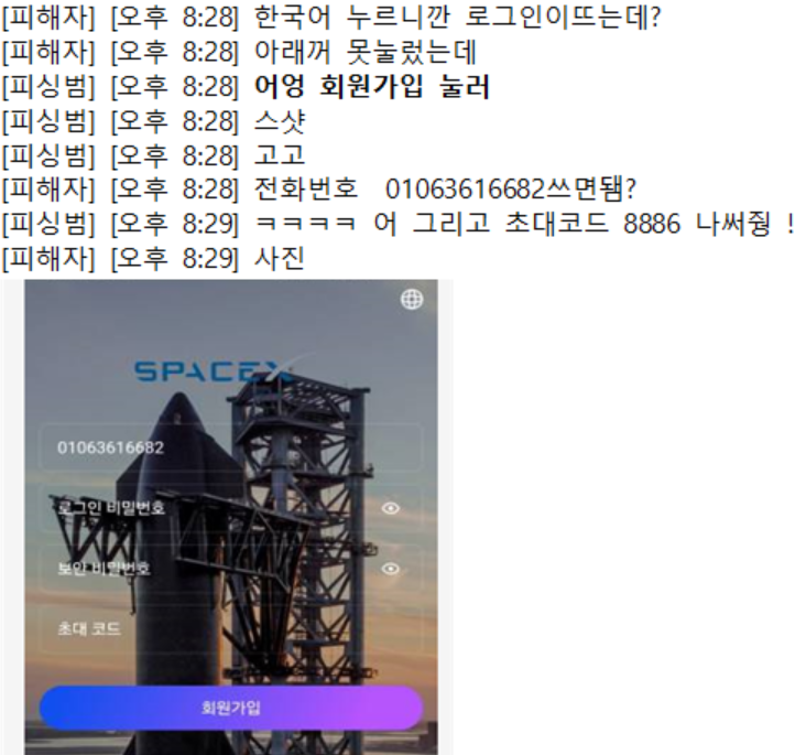 투자금을 가로챌 창구로 가짜 스페이스X 앱까지 만들어 피해자들이 이를 설치하도록 유도했다. 이들은 피해자들이 해당 앱에 투자한 것이 확인되면 캄보디아에 있는 범죄조직으로부터 범죄수익을 코인이나 달러로 지급받아 원화로 환전했다.