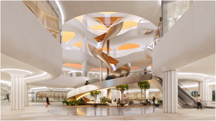 아트리움 공간의 거대한 꽃잎이 겹겹이 피어오르는 초현실적인 형상의 조형물과 함께, 천장에서 떨어지는 폭포가 공간디자인과 결합해, 시간과 계절의 변화에 따라 새로운 경험을 제공한다. 빅리프 아트리움은 단순한 조형물을 넘어, 방문객의 체류 경험의 깊이를 확장하는 공간으로 기능하며, 새로운 쇼핑몰의 핵심 아이덴티티 역할을 할 것으로 보인다.