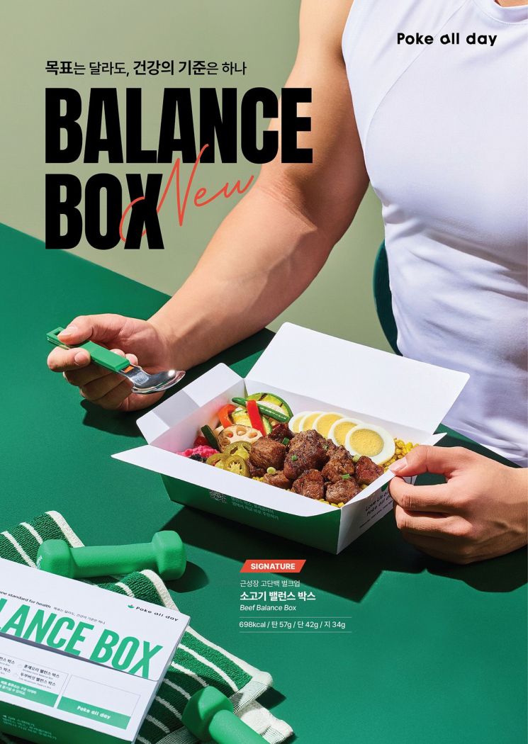 운동을 하는 이유와 방식은 사람마다 다르지만, 몸이 필요로 하는 기본적인 영양의 기준은 같다는 점에 착안해 기획된 포케올데이 밸런스 박스는 벌크업, 컷팅, 유지 등 다양한 운동 목표에 맞춰 선택할 수 있는 '탄단지 완벽 밸런스' 메뉴로 구성됐다. 언제 어디서든 간편하게 즐길 수 있는 도시락 형태로, 한 손에 담아 일상 속에서 실천하는 웰니스 식단이라는 점에서 '한 손에 담은 웰니스', '내가 나를 사랑하는 작은 실천의 반복'이라는 올데이 리츄얼 콘셉트를 담고 있다.