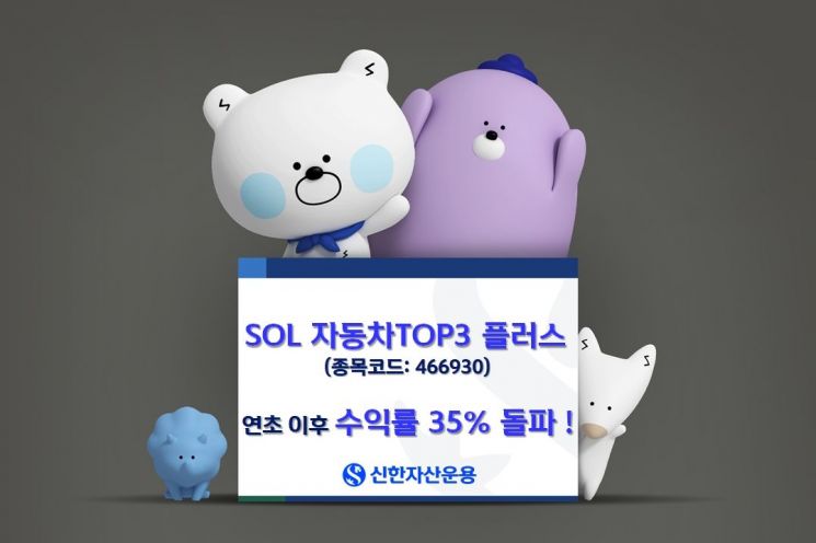 신한자산운용은 'SOL 자동차TOP3플러스'가 현대차 그룹주 상승효과로 연초 이후 3주 만에 수익률 35%를 돌파했다고 20일 밝혔다.