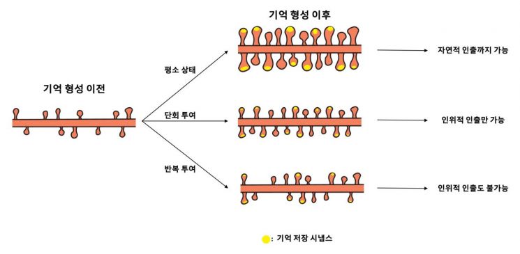 기초과학연구원(IBS) 기억 및 교세포 연구단 강봉균 단장 연구팀은 기억을 저장하는 잉그램 세포뿐 아니라, 이들 사이에 형성되는 시냅스의 수와 구조적 강화가 실제 기억 회상에 결정적인 역할을 한다는 사실을 실험적으로 밝혀냈다.