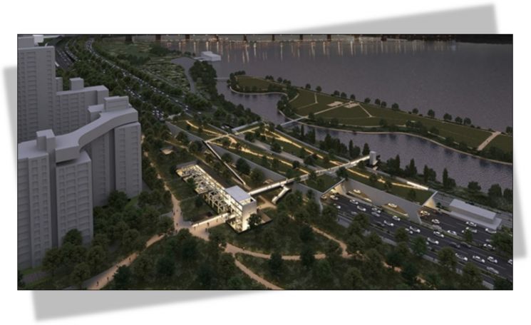 주거지와 한강을 연결하는 서울시내 첫 덮개공원 조성 사업이 속도를 낸다. 한강변 시설물 설치 규제가 지난해 제거된 데 이어 하천점용 허가를 위한 추가 설계 작업이 시작됐다. 덮개공원은 서울시가 추진하는 한강변 재구조화 사업의 핵심이다.