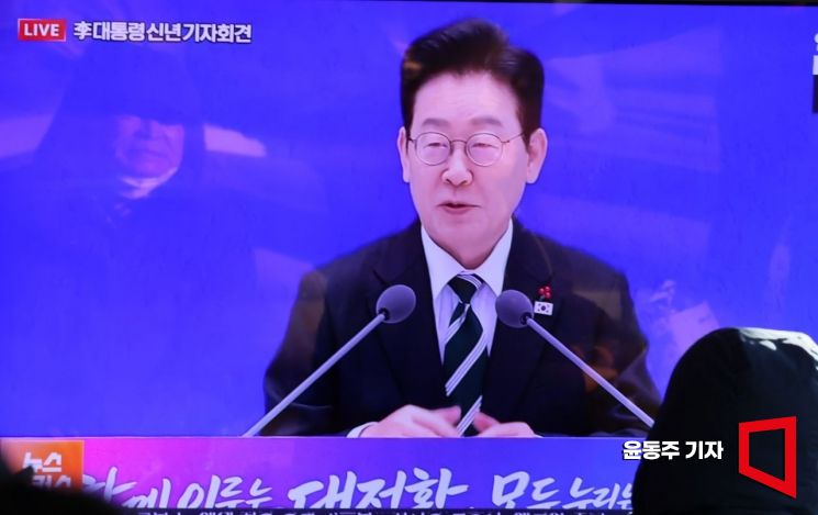 이재명 대통령이 청와대로 복귀한 뒤 처음으로 준비한 신년 기자회견은 전반적으로 진지하고 차분한 분위기 속에서 진행됐다. 이 대통령은 21일 오전 10시 청와대 영빈관에서 내·외신 기자 160여 명이 참석한 가운데 '함께 이루는 대전환, 모두 누리는 대도약'을 슬로건으로 신년 기자회견을 열었다.