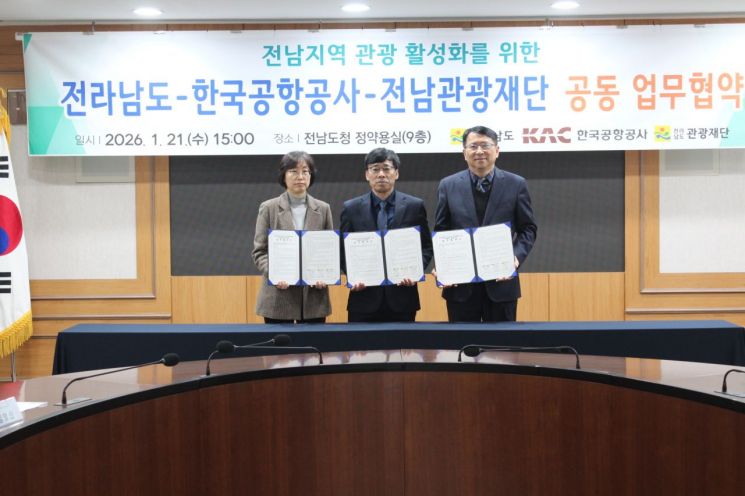 전라남도는 21일 한국공항공사, 전남관광재단과 함께 무안국제공항과 연계한 여행업계 지원 및 전남 관광 활성화 업무협약을 했다.