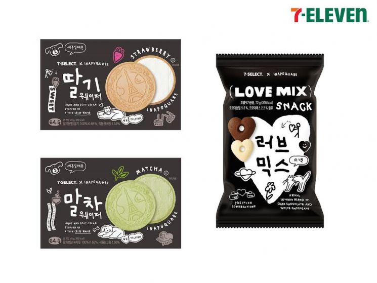 신제품으로는 '세븐셀렉트 이나피웨이퍼(딸기·말차)'과 '세븐셀렉트 이나피러브믹스' 총 3종을 선보인다. 이나피스퀘어의 시그니처 컬러인 흑, 백 드로잉 패키지를 적용했다.