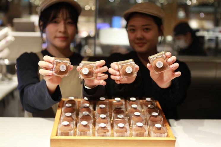 롯데백화점 광주점 지하1층 보향떡집과 베비에르에서는 SNS 등에서 인기를 끌고 있는 디저트 '두바이쫀득쿠키'를 선보이고 있다.