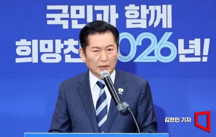 정청래 더불어민주당 대표가 22일 국회에서 긴급 기자회견을 열고 조국혁신당과의 합당을 제안하고 있다.