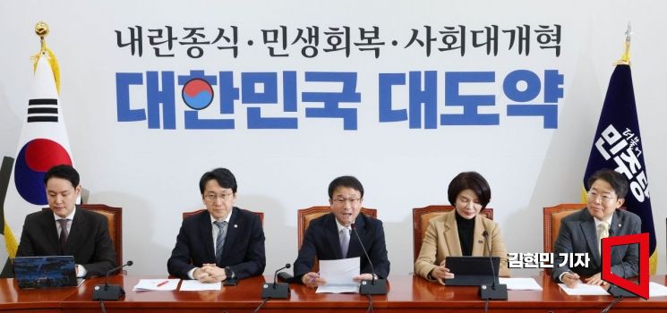 한병도 더불어민주당 원내대표가 22일 국회에서 열린 정책조정회의에서 발언하고 있다.