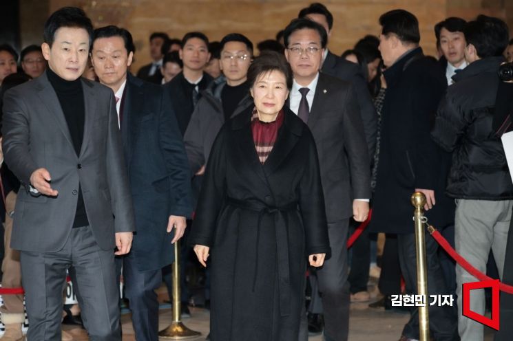 박근혜 전 대통령이 22일 국회 로텐더홀에서 통일교·공천헌금 '쌍특검' 수용을 요구하며 8일째 단식 중인 국민의힘 장동혁 대표를 찾고 있다.