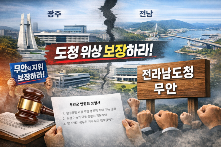 번영회는 "일방적인 통합 추진으로 도청 소재지의 위상이 훼손되는 상황은 결코 용납할 수 없다"며 "무안군민의 목소리를 외면하지 말고, 도청 소재지로서 무안군이 흔들림 없는 행정 중심지로 기능할 수 있도록 구체적인 방안을 조속히 제시하라"고 촉구했다.