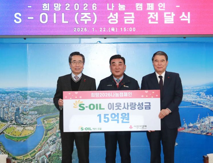 S-OIL은 22일 울산시청에서 김두겸 울산광역시장, 박봉수 S-OIL 운영총괄 사장, 전영도 울산사회복지공동모금회장 등이 참석한 가운데 '희망2026 나눔캠페인' 성금 15억원을 울산사회복지공동모금회에 전달했다.