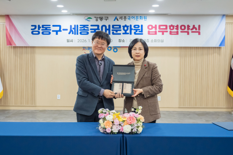 서울 강동구(구청장 이수희)가 세종국어문화원(원장 김슬옹)과 올바른 공공언어 사용을 촉진하고 쉽고 바른 우리말 사용 문화를 확산하기 위한 협약을 맺었다고 23일 밝혔다.