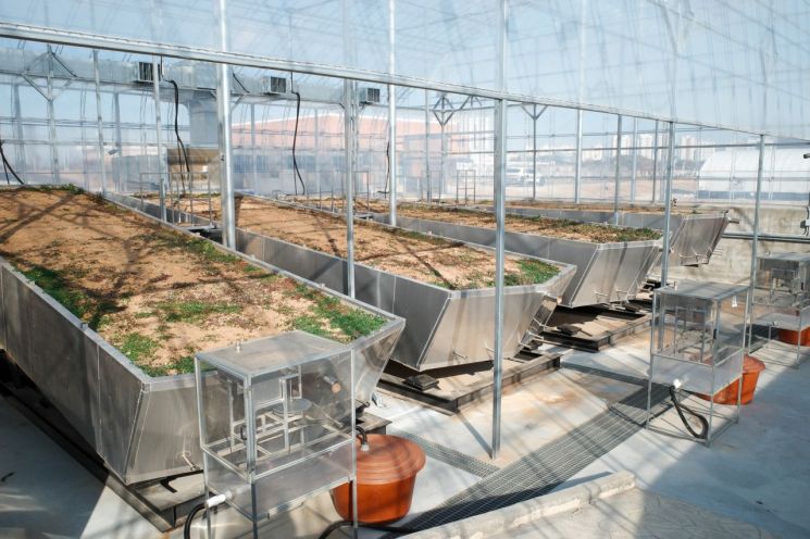 홍성길 농촌진흥청 기후변화연구동 연구관은 "강우량과 경사, 작물의 생육에 따른 토양유출과 이에 따른 양분 유출 등 농지의 기후영향 취약성을 분석할 수 있다"며 "폭우가 내린 후 발생하는 토양침식을 분석해 양분이 얼마나 유출되는지 파악하고 이를 기반으로 적절한 추가적인 양분량과 토양 유실을 저감할 수 있는 기술을 개발할 수 있다"고 설명했다. 농진청은 올해 상반기엔 콩과 옥수수를, 하반기엔 무를 챔버에 심어 극한 강우와 경사도에 따른 토양 침식 정도를 분석할 계획이다.