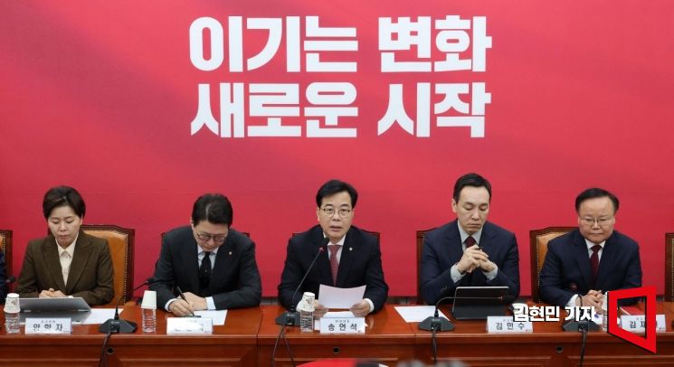 송언석 국민의힘 원내대표가 26일 국회에서 열린 최고위원회의에서 발언하고 있다.