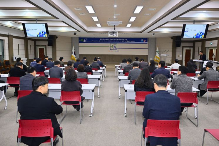 속초시가 26일 시청 종합민원실 5층 대회의실에서 이병선 속초시장과 관계부서 공무원 등이 참석한 가운데 '속초시 스마트도시계획(2027~2031) 수립 용역' 착수보고회를 개최하고 있다. 속초시 제공