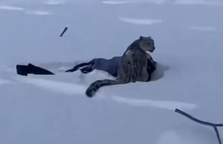 당시 상황이 담긴 영상에는 깊은 눈 속에서 A씨가 눈표범 아래에 깔려 있다가 주변 사람들의 도움으로 빠져나오는 모습이 담겼다. 얼굴에 피를 흘린 채 얼굴을 감싸 쥐고 이동하는 장면도 포착됐다.