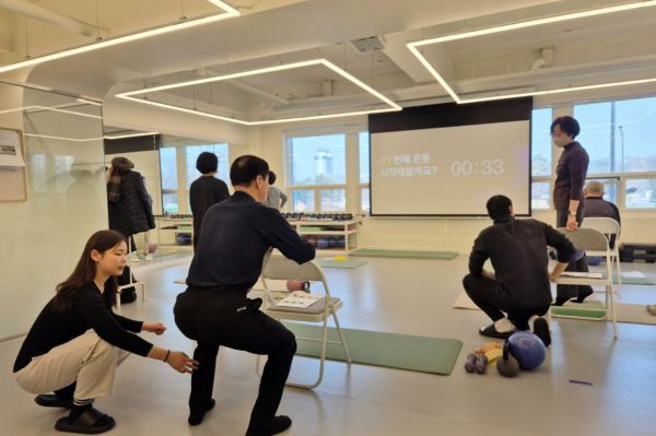 16일 서울 송파구 올림픽공원 인근 건물 2층에 자리한 비바랩스 시니어운동센터. 고령의 수강생들이 요가 매트 위에 서서 각기 다른 동작을 수행하고 있었다. '한 동작에 2분 30초, 1분 휴식'을 반복해 1시간 동안 총 10개 동작을 소화해야 한다. 발 앞에 놓인 개인별 동작 지침서에는 코어와 상·하체 운동법에 대한 사진과 설명이 담겼고 아령과 케틀벨, 루프 밴드 등 도구 활용법도 함께 제시됐다. 전문 코치는 이들 곁에서 운동을 보조했다. 인공지능(AI) 헬스케어 플랫폼 비바랩스의 임하영 대표는 "운동 자세가 몸에 완전히 익도록 돕는 것이 목표"라며 "집에서도 반복 운동할 수 있도록 교육 영상을 휴대전화로 제공한다"고 했다.