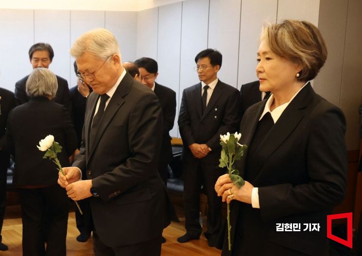 문재인 전 대통령과 김정숙 여사가 27일 오후 서울 종로구 서울대학교병원 장례식장에 마련된 고 이해찬 민주평화통일자문회의 수석부의장의 빈소를 찾아 조문하고 있다. 2026.1.27 사진공동취재단