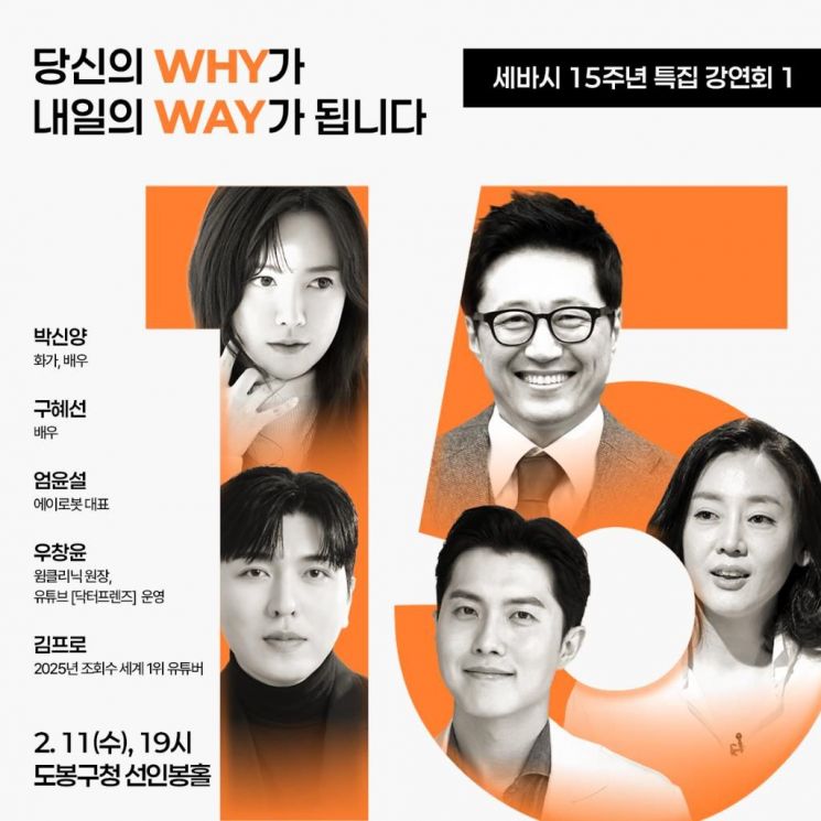 서울 도봉구(구청장 오언석)가 오는 2월 11일 오후 7시 도봉구청 2층 선인봉홀에서 '세바시(세상을 바꾸는 시간 15분)' 15주년 특집 강연회를 연다.