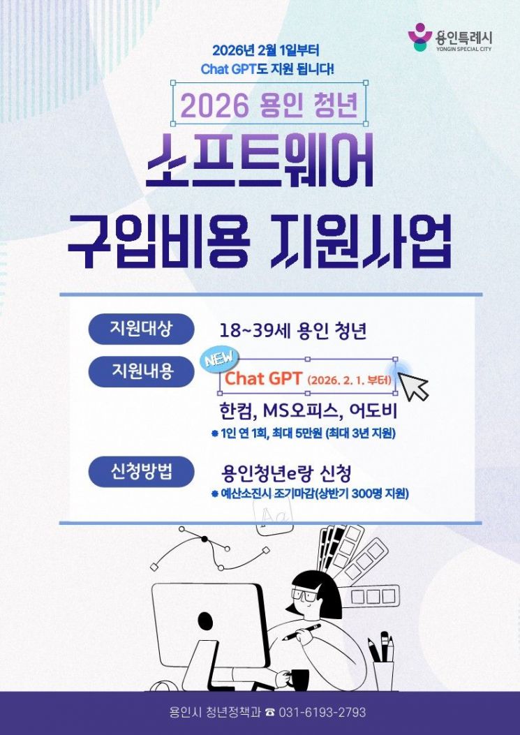 용인시는 청년들의 디지털 역량 강화를 위해 '청년 소프트웨어 구입비용 지원사업' 대상 품목에 '챗 GPT 플러스'를 추가했다고 2일 밝혔다.