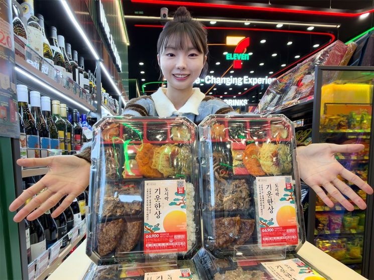 세븐일레븐은 오는 10일 설을 맞아 '기운한상도시락(6900원)'을 새로 선보인다. 쫀득한 알떡스테이크와 소불고기, 모둠전을 메인으로 구성하고, 가정식 잡채와 각종 나물을 더해 총 11가지 반찬으로 구성했다. 명절 상차림의 핵심 메뉴들을 한 도시락에 담아내 혼자서도 든든하고 풍성한 설 한 끼를 즐길 수 있도록 기획한 것이 특징이다.
